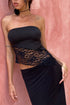 Chic strapless cami with a stylish lace overlay design. Features an asymmetrical cut for a unique look. Perfect for layering or wearing on its own.