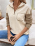 Soft fleece hoodie with a playful color-block design. A comfortable and trendy piece for the colder months.