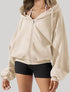 Cropped hoodie with a zip front and oversized sleeves. Casual and chic, perfect for a sporty or relaxed look.