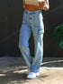 High-waisted jeans with a cargo-style design. Features utility pockets and straight legs. A trendy option for casual streetwear outfits.