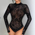 Long-sleeve sheer bodysuit with velvet floral patterns. Features a slim fit and high neckline. Perfect for layering or statement evening looks.