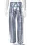 Straight-leg jeans with a silver foil print. A bold and modern twist on classic denim.