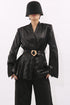 Sleek blazer jacket with a unique structured design. Features an adjustable belt for a tailored fit. Ideal for adding a chic touch to any outfit.