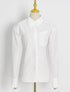 Structured shirt with padded shoulders. Waist-tie detail creates a feminine silhouette. A polished and modern piece.