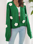 Knit cardigan with 3D flowers and lantern sleeves. A feminine and elegant outerwear piece.