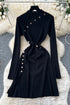 Stylish casual dress with a unique asymmetrical button design. Features a flattering silhouette with long sleeves. Perfect for effortless everyday wear.