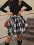 Asymmetrical Checkered Sleeve Tie Faux Shirt Skirt