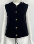Sleeveless vest with cable-knit texture. Button-up closure for easy styling. Ideal for layering over shirts or dresses.