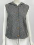Sleeveless vest with cable-knit texture. Button-up closure for easy styling. Ideal for layering over shirts or dresses.