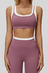 Stylish sports bra with distinctive contrasting straps. Offers great support for active lifestyles. Perfect for workouts and everyday wear.