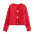 A chunky knit cardigan with oversized buttons and front pockets, perfect for cozy layering in cool weather.