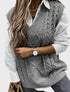 Sleeveless chunky knit vest with a deep V-neckline. Cable-knit texture for added charm. Ideal for layering over shirts or dresses.