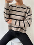 Pullover knit sweater with bold stripe detailing. Features a relaxed fit and crew neckline. Effortless style for casual ensembles.