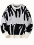 A crewneck sweater featuring an abstract pattern and a relaxed fit.