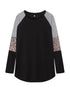 Long sleeve top with contrast color blocking. Relaxed fit for a comfortable look. Adds a casual style to your wardrobe.