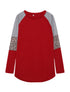 Long sleeve top with contrast color blocking. Relaxed fit for a comfortable look. Adds a casual style to your wardrobe.
