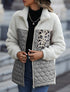 Colorblock sherpa jacket with quilted panels. Features a high neckline and zipper closure. Adds warmth and style to any outfit.