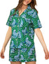 Pajama set with a colorful bottle print. Includes a button-up shirt and matching shorts, perfect for playful lounge wear.