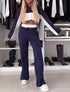 Two-piece jogger set with a cropped hoodie and wide-leg pants. Features a contrast panel design for a sporty look. Comfortable for everyday wear.
