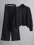 Relaxed knit lounge set with a pullover top and pants. Comfortable for casual days. Ideal for staying cozy at home.