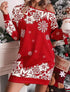 Snowflake print long-sleeve tunic with a relaxed fit. Perfect for a cozy holiday look. Stylish and comfortable for festive gatherings.