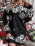 Snowflake print long-sleeve tunic with a relaxed fit. Perfect for a cozy holiday look. Stylish and comfortable for festive gatherings.