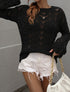 A crochet-knit top with long sleeves and intricate patterns. Lightweight and breathable for a relaxed fit.