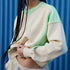 Cropped pullover with a relaxed fit and color block design. Perfect for active or casual wear.