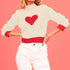 Cropped knit top with a bold heart accent. Features ribbed details and a fitted silhouette. A trendy choice for casual chic looks.