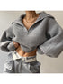 A cropped sweater top featuring a V-neckline, ribbed texture, and oversized sleeves.