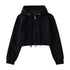 Cropped hoodie with a zip-up front and drawstrings. A cozy layering piece for active or casual looks.