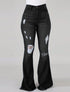Distressed high-waist jeans with flared legs. Casual and trendy for a relaxed day out.