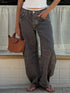 Wide-leg jeans with a high-waisted fit and distressed details.