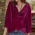 Blouse with a draped neckline and 3/4 sleeves. Relaxed fit for an elegant casual look. Perfect for day or evening wear.