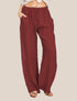 Wide-leg casual pants with a high-waisted drawstring design and side pockets, offering a relaxed and comfortable fit.