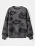 Knit sweater with a bold eye graphic pattern. Adds a unique statement to casual outfits.