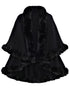 Faux fur shawl cape with tiered trim. Draped silhouette for cozy layering. A luxurious addition to winter looks.