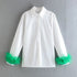 Shirt with feather cuffs for a dramatic, fashion-forward style.
