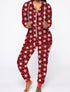 Comfortable jumpsuits featuring festive-themed prints. Designed with a zipper closure and cuffed sleeves for a cozy fit. Ideal for loungewear or holiday celebrations.
