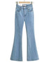 A set of flared high-waist denim jeans in multiple shades, offering a trendy and flattering fit.