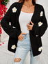 Cardigan with floral applique details. Open front and oversized fit for a cozy and stylish look.