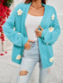 Cardigan with floral applique details. Open front and oversized fit for a cozy and stylish look.