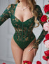 A floral lace bodysuit featuring a bustier design and long sleeves for a structured fit.