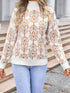 A mock neck sweater featuring a floral pattern and long sleeves.