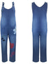 A denim jumpsuit with colorful floral prints. Comfortable and playful for casual outings.
