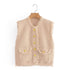 Chunky knit vest with fringe details. Great for layering and adding texture to your outfit.