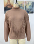 Fringe Knit Turtleneck Sweater with V-Design