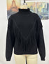 Fringe Knit Turtleneck Sweater with V-Design