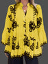 A blouse with flared sleeves and a bold print, designed for a flowy and relaxed fit.