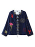 A tie-front jacket with long sleeves and graph details, adding a playful and artistic touch to your look.